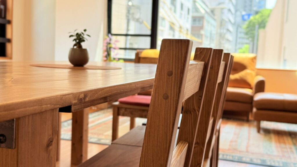 少人数で落ち着いてゆっくり話をしたり、木の温もりに包まれてほっと一息つける空間。